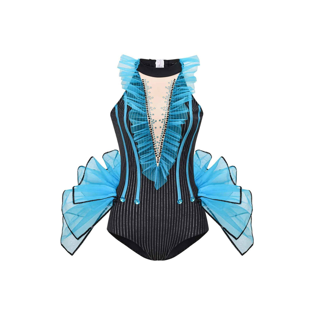 De La Diva 'Hustle and Bustle' Pinstripe Halter 2-in-1 Dance Costume