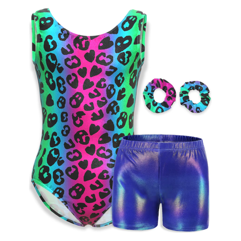 Bright Leopard Print Gymnastics Leotard & Shorts Set