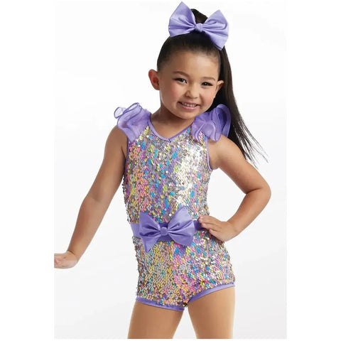 DC Classics Medley Neon Sequin Biketard Dance Costume - IC (approx age 7-8)