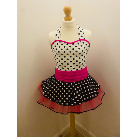 'CeCe' Pink, Black & White Polka Dot Halterneck Rock n Roll Dance Dress