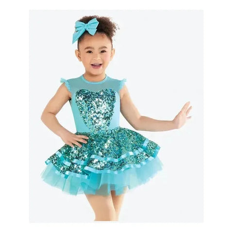 Kinetic 'Turn It Up' Aqua & Silver Sequin Dress Dance Costume