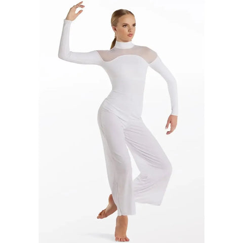 Balera White Mesh Illusion Long Sleeve Bandeau Leotard - LC (approx age 12-14)