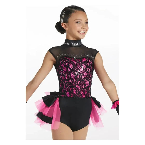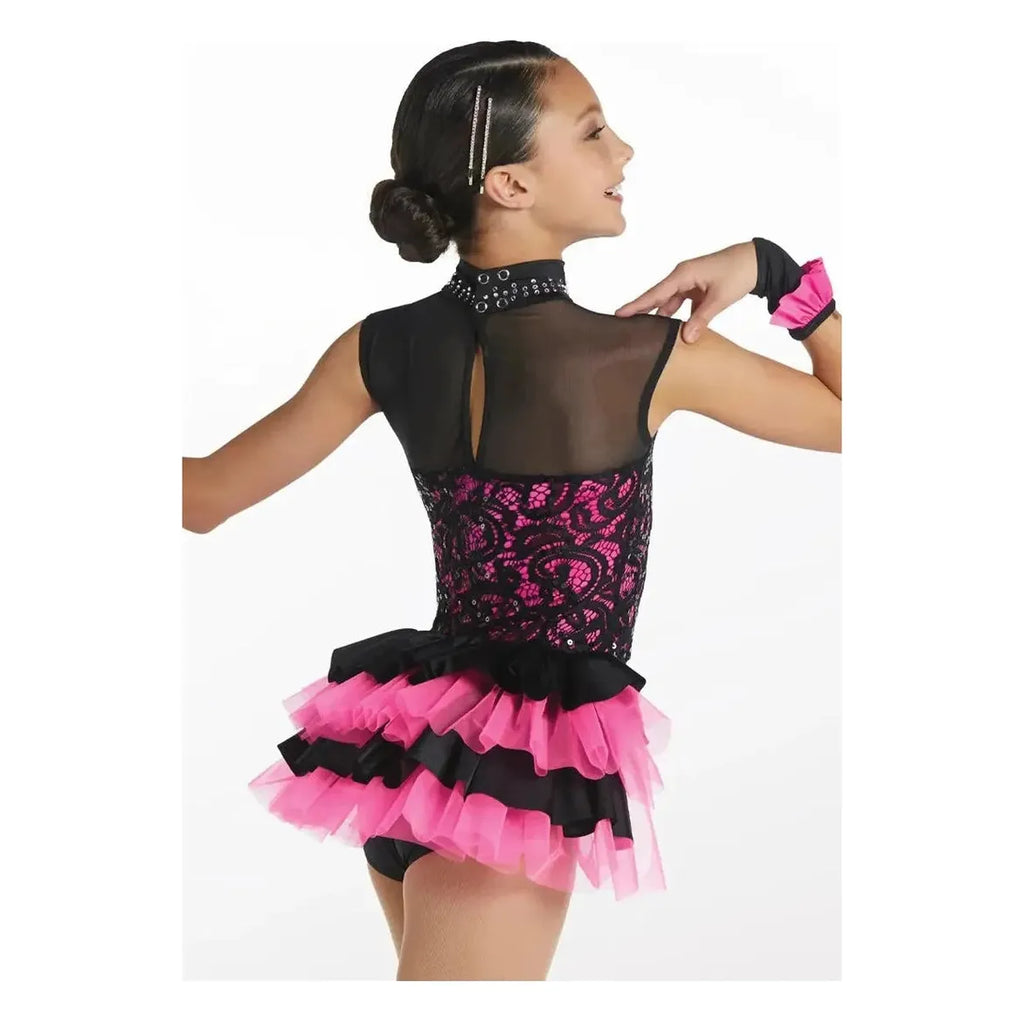 'Come & Get It' Pink & Black Sequin Lace Crystal Bustle Leotard Jazz Dance Costume