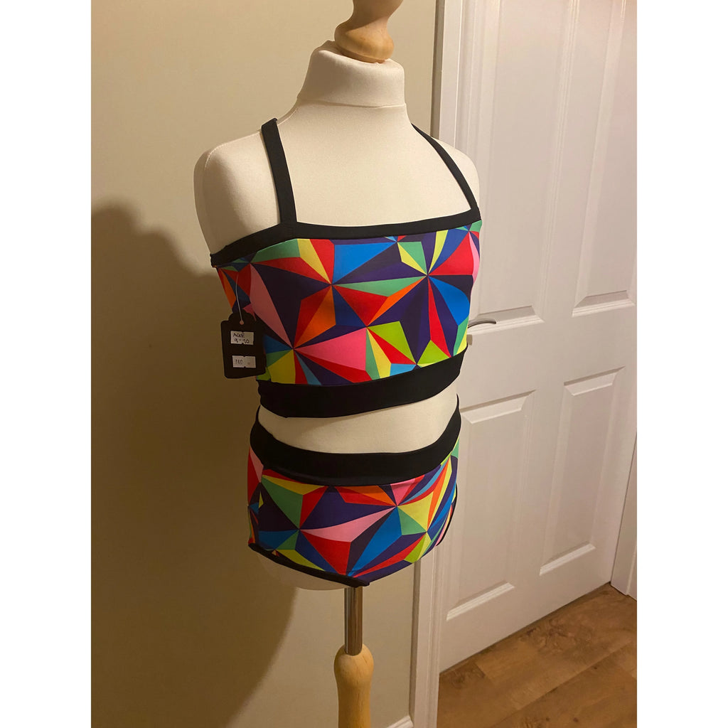 Multicolour Geo Shape Crop Top & Knickers Set - age 9-10