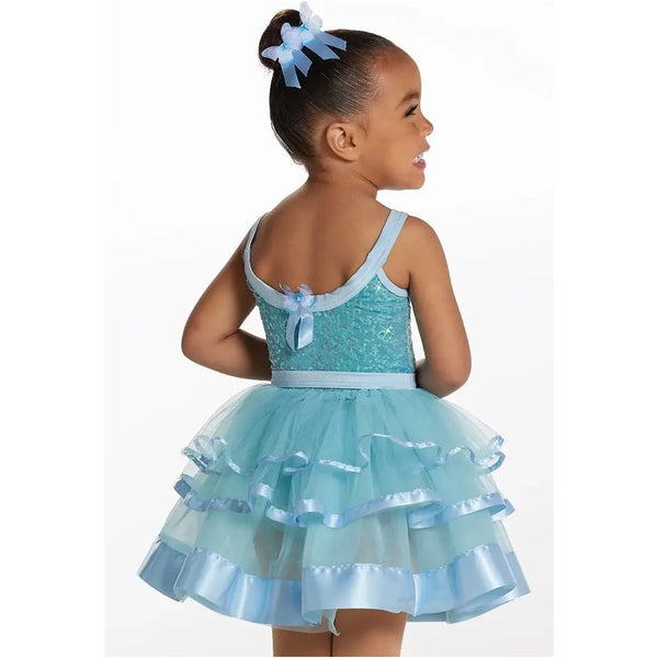 - Tiered tutu of tulle and tricot trimmed in satin ribbon